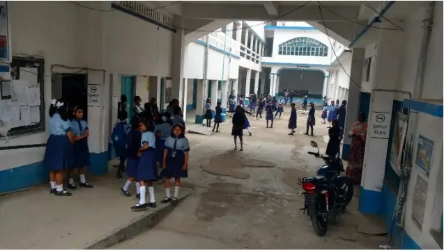1. If you look at the above picture you will see that Karimpur Girls School is quite a sizeable school. The 3 storied building has classes on all 3 floors. Classes are of 40 minutes each. Since we have divided each section into 3 batches for class 5 and 4 for class 6; there is loss of valuable time as students moved from one room to another in between periods. Initially the allotted rooms were poles apart which created further problems.