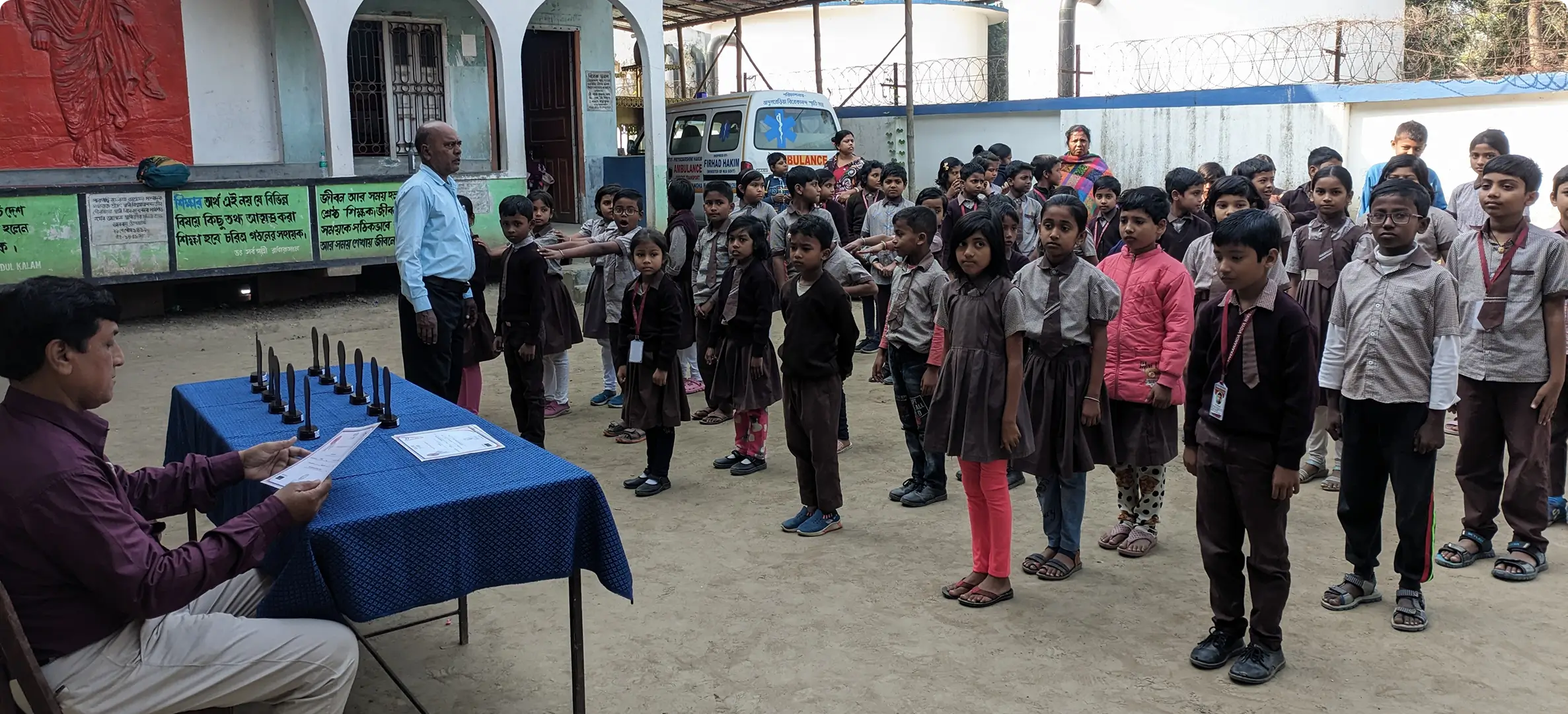After a brief round of preparations, they headed towards Vivekananda Vidya Niketan, Andulberia, Murshidabad, arriving right on time.